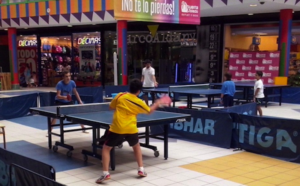 Gran jornada de promoción deportiva, que comenzó por la mañana con Julio Redondo, Director Técnico de la Federación de tenis de mesa de Castilla la Mancha, y a su cargo varios de los jugadores de la Selección de Castilla la Mancha, que hicieron las delicias de los espectadores, tanto así que Julio tuvo que hacer al mismo tiempo la labor de promoción entre los visitantes, concretando más de 5 chavales para la incorporación en las diferentes escuelas de la Provincia, especialmente para la de Olías del Rey. La jornada de mañana acabo con una exhibición de los jugadores de la selección que sembró la admiración de los visitantes del centro comercial.