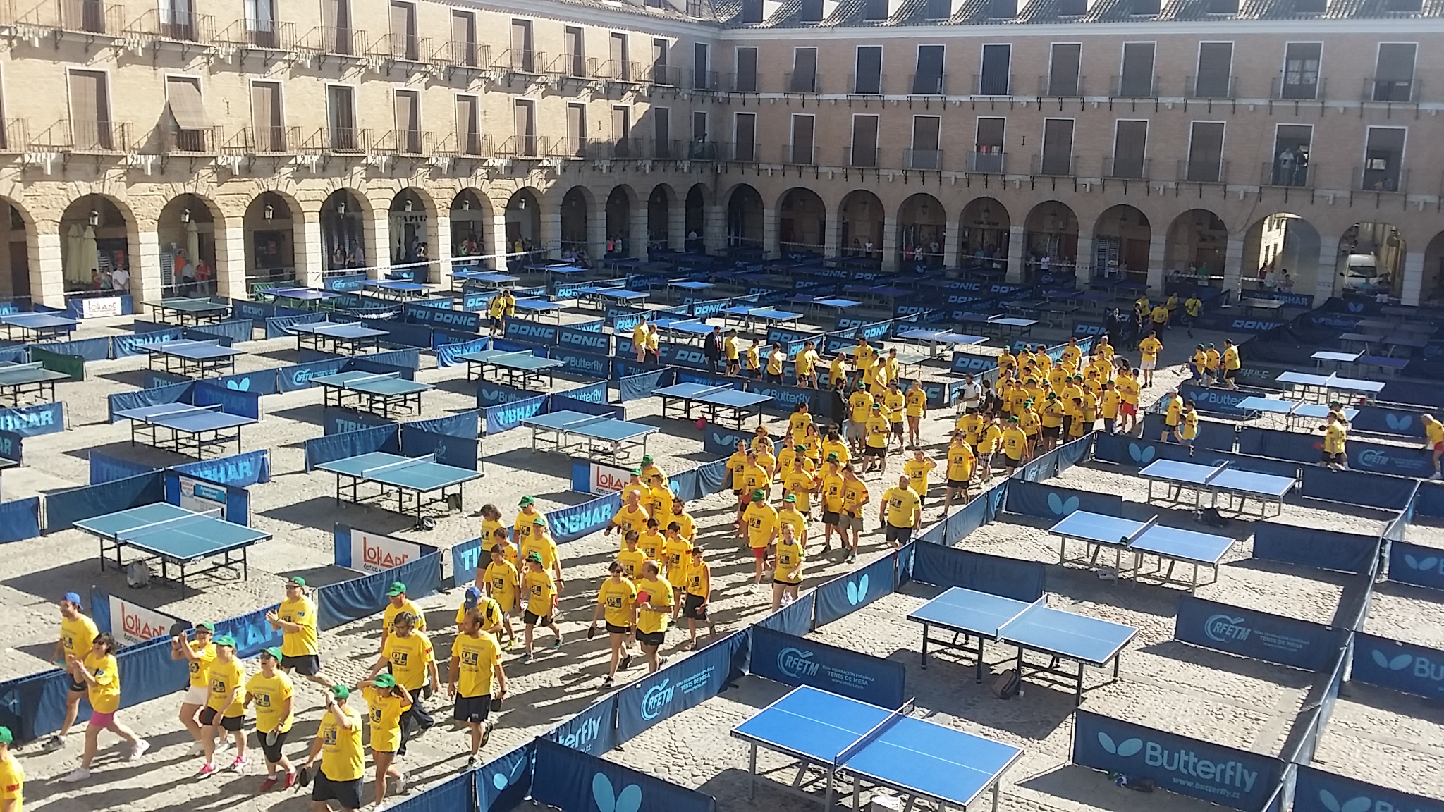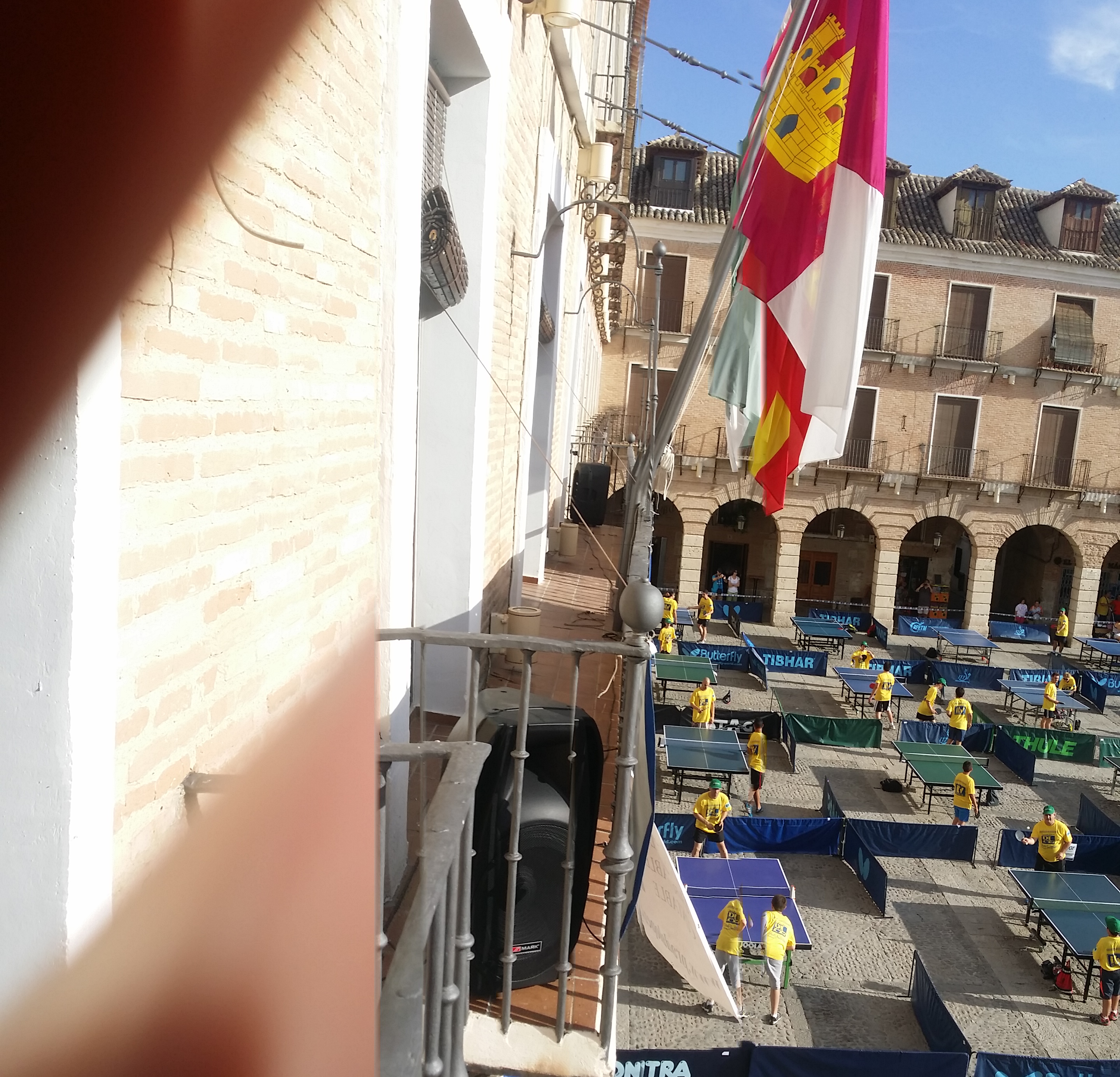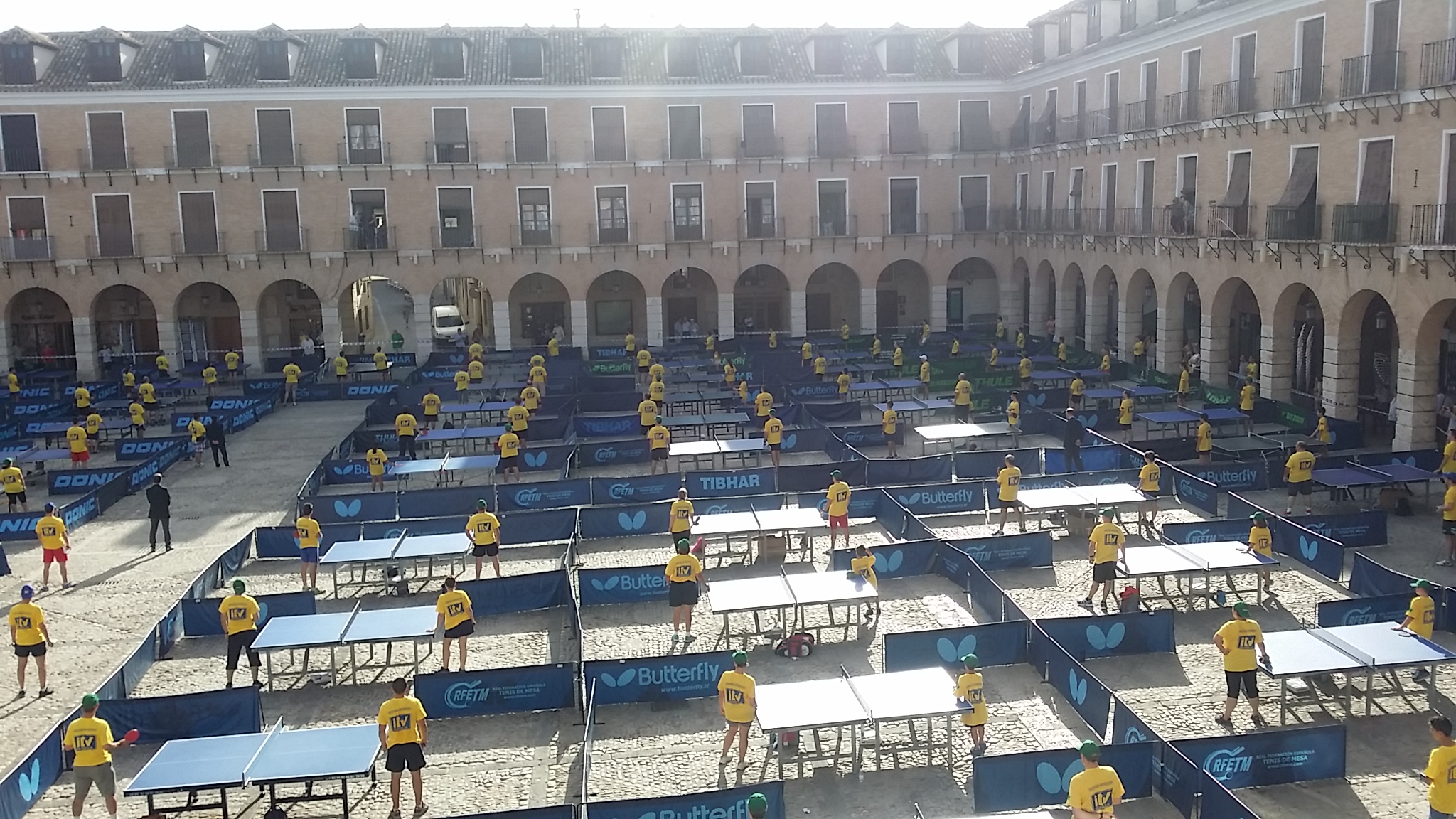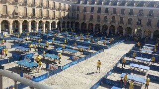 Ha sido un exito sin precedentes. Llegar a la plaza mayor de Ocaña y ver todo montado a primeras horas de la mañana. Ver como las 200 personas han ido llenando las mesas , acudiendo a la llamada del evento , sin mas interes que disfrutar de una preciosa mañana deportiva y amigable con el fin de batir un guinness, si UN RECORD GUINNESS DE TENIS DE MESA , en OCAÑA (Toledo) CASTILLA LA MANCHA . ESPAÑAAAA, un record que estaba en JAPON , y que aun al menos los CHINOS no se han propuesto batir, y aunque lo hagan , nunca lo haran en un marco incomparable como la plaza de Ocaña. 200 personas participando y otras 60 que se han quedado con intención de hacerlo, porque habia gente disponible para ello. Todo perfectamente organizado, todo perfectamente estudiado, hasta la distancia entre los campos de juego..