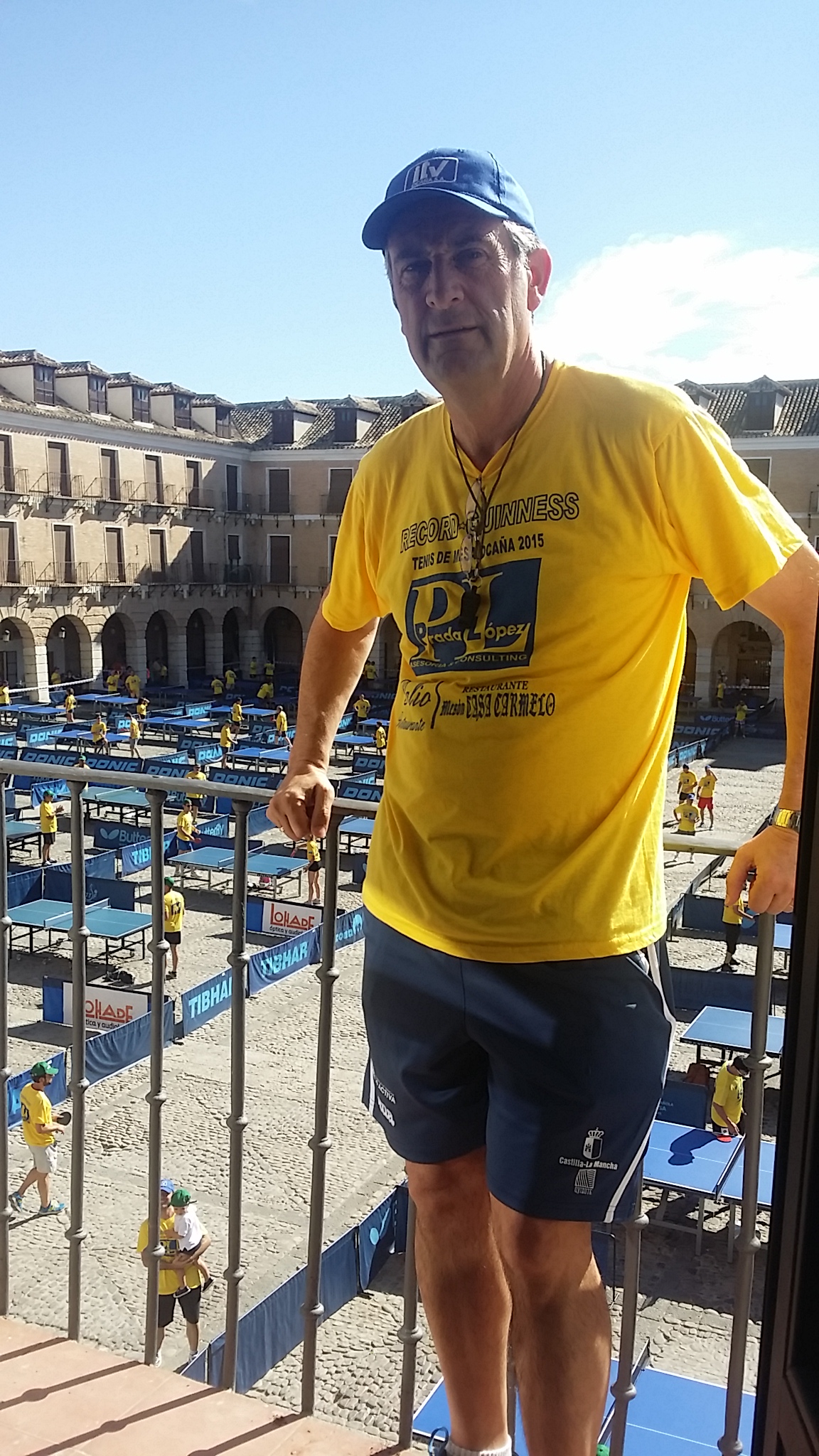 Impresionante oir el silencio en la plaza cuando Jose Maria iba dando las instrucciones por el microfono de un equipo de sonido que funciono a la perfección . Nadie queria quedarse sin saber que habia que hacer. Todos concienciados para batir este record. Mucho calor , 2 ensayos previos , para que en el momento de ponerse a batir el ansiado record no hubiese ningun fallo. 6 arbitros del COLEGIO OFICIAL DE ARBITROS DE LA FEDERACION DE TENIS DE MESA DE CASTILLA LA MANCHA, con su PRESIDENTE y juez del evento JOSE IGNACIO BERMEJO PEDRERO, vigilaban que todo estuviese según la normativa exigida por la COORPORACION RECORD WORLD GUINNESS .