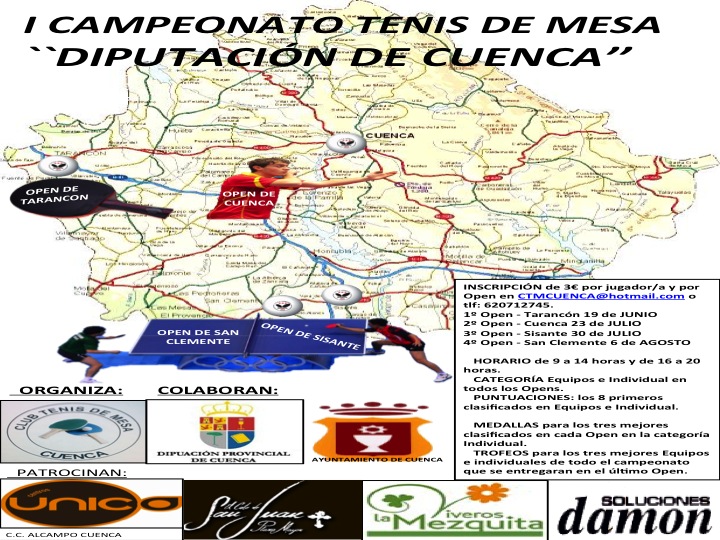 provincia de Cuenca. Se trata del I OPEN PROVINCIAL DE TENIS DE MESA,