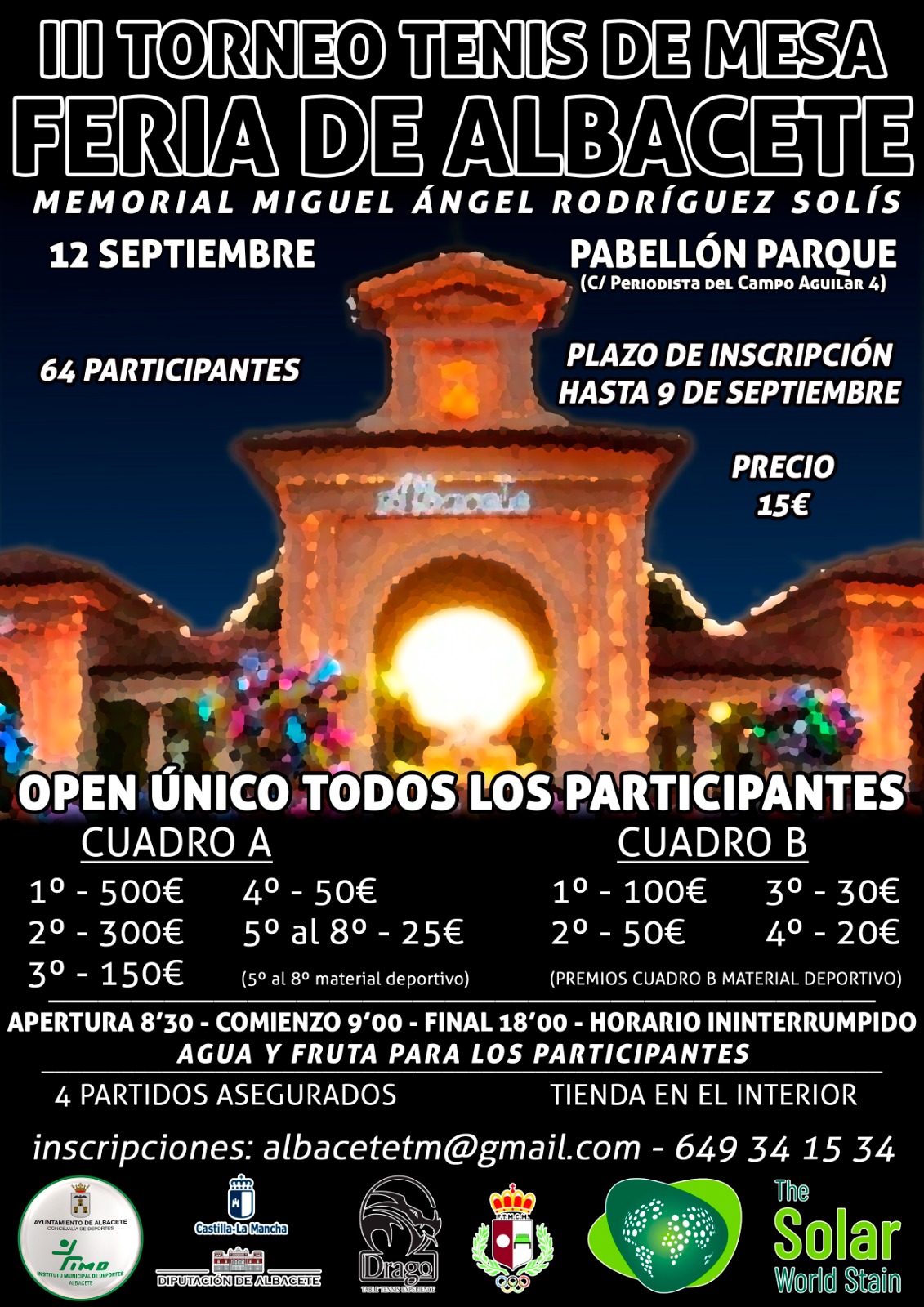 El club Albacete TM organiza el próximo 12 de septiembre de 2021, en el pabellón Parque, el III Torneo Tenis de MEsa con motivo de la Feria de Albacete, «Memorial Miguel Ángel Rodríguez».