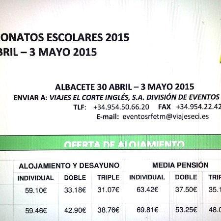 OFERTA HOTELERA CAMPEONATO DE ESPAÑA ESCOLAR (ALBACETE 2015)