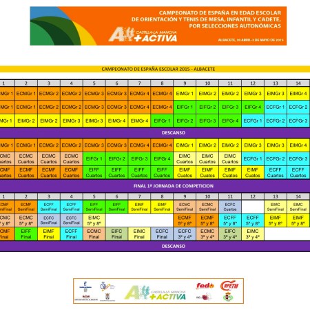 MASTER Y HORARIOS GENERALES DEL CAMPEONATO ESPAÑA ESCOLAR EN ALBACETE. Y BOLETIN 1