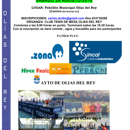 XI EDICION MARATON INTERNACIONAL TENIS DE MESA OLIAS DEL REY . SABADO 29 AGOSTO 2015