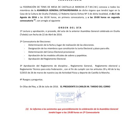 CONVOCATORIA ASAMBLEA EXTRAORDINARIA